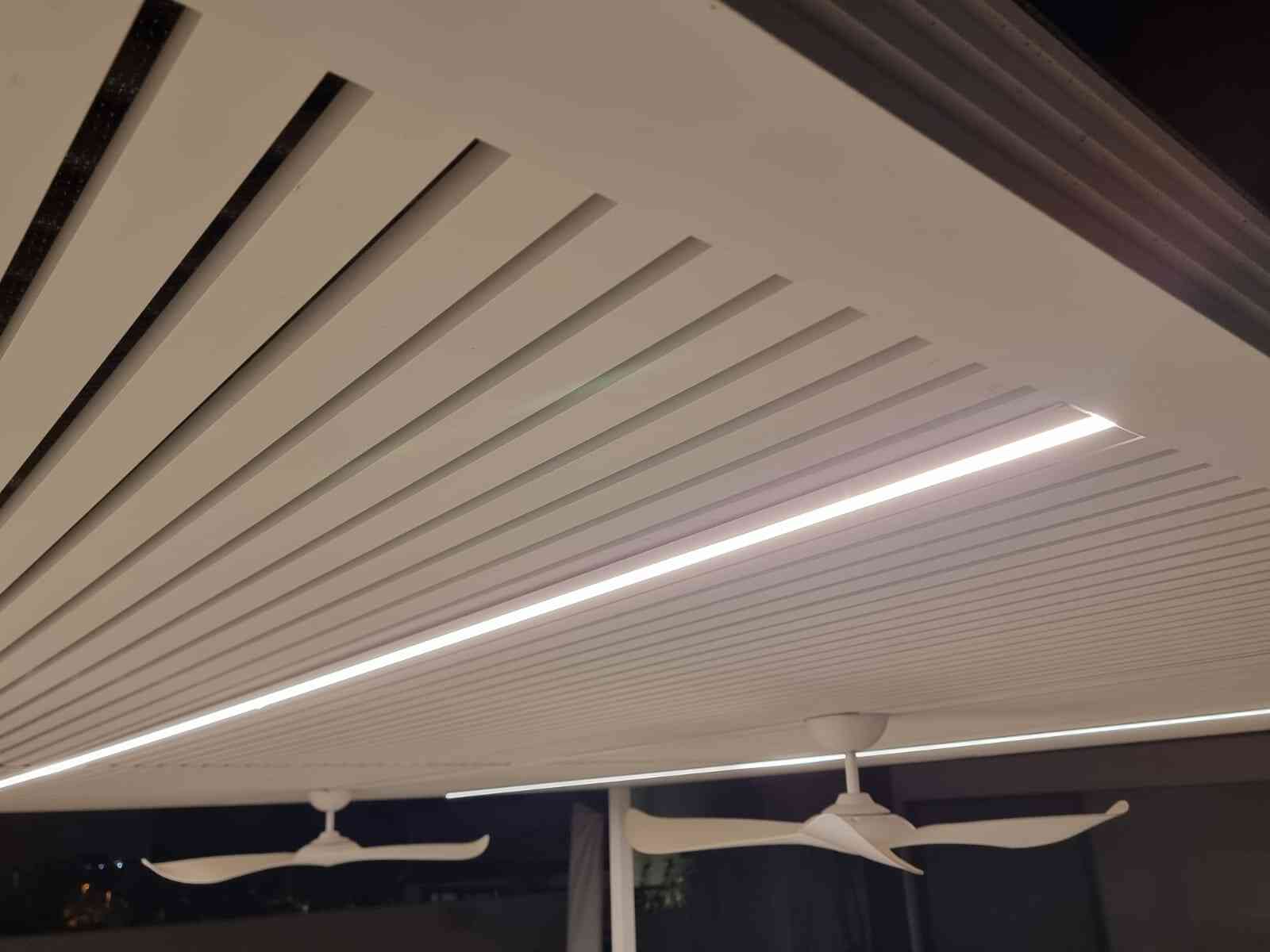 פרגולה חשמלית מתכווננת מאפשרת להשפיע על רמת הצפיפות / הזווית של התריסים בגג הפרגולה, מה שמשנה את מידת ההצללה. אתם יכולים לבחור מצב בו אור השמש כמעט ולא יחדור, או להיפך, לבחור שהמרפסת שלכם תהיה כמה שיותר מוארת.